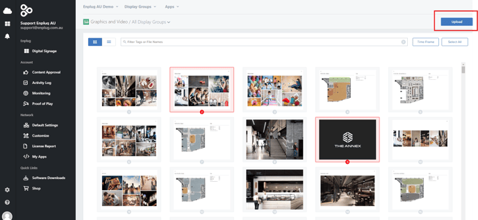 Adding Content to a Display Group via the "Graphics and Videos" app