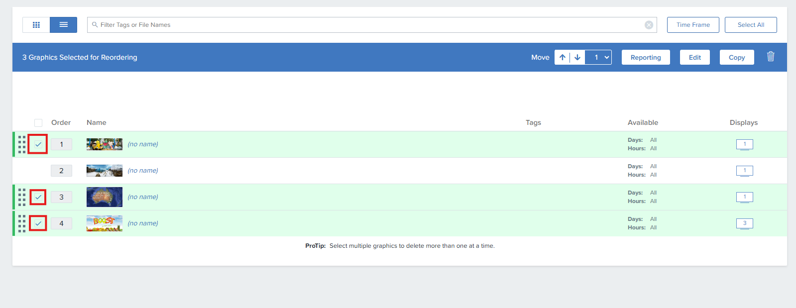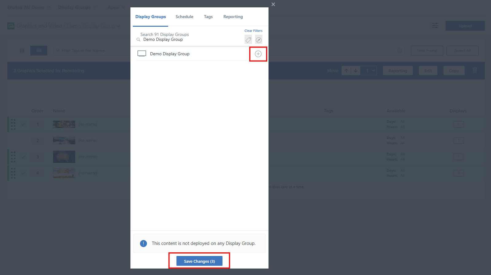 Step 5: Unchecking the tickbox and pressing save will deactivate that individual content from the display group. Alternatively if you want to deactivate multiple pieces of content please see below: