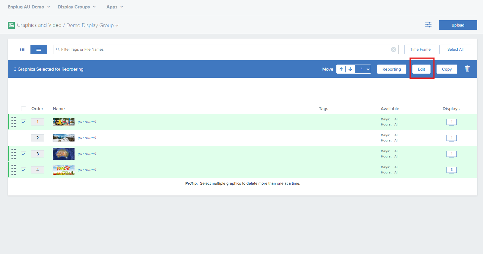 Step 8: Press the edit button. This will display the list of display groups in your account.