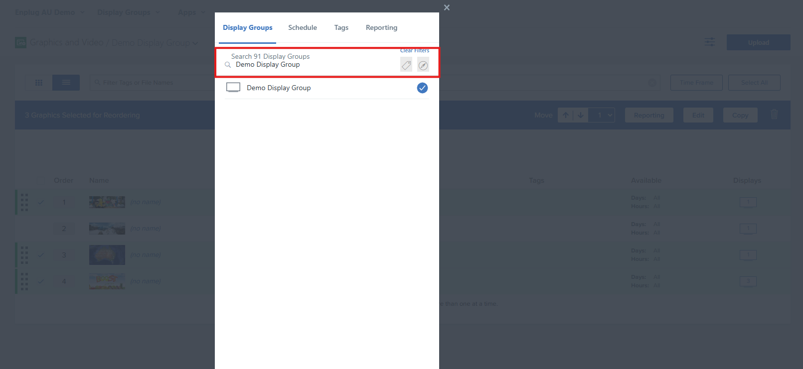 Step 4: Press the Display Group tab and search for the Display Group that this content is assigned to. It will have a little tick in the list: