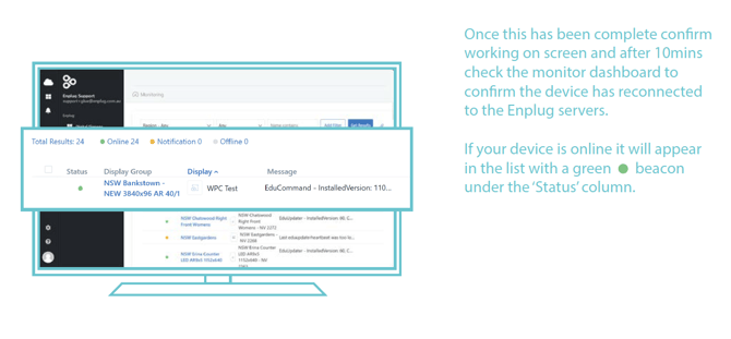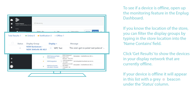If you have access to the Enplug dashboard you can check the status of a devices to see if it is showing online or offline.