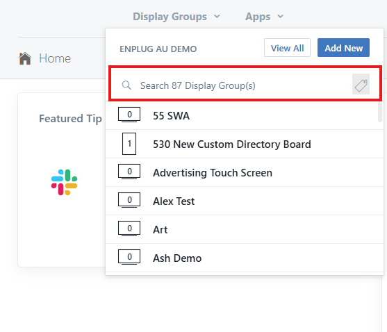 1. Search for the display group you want.